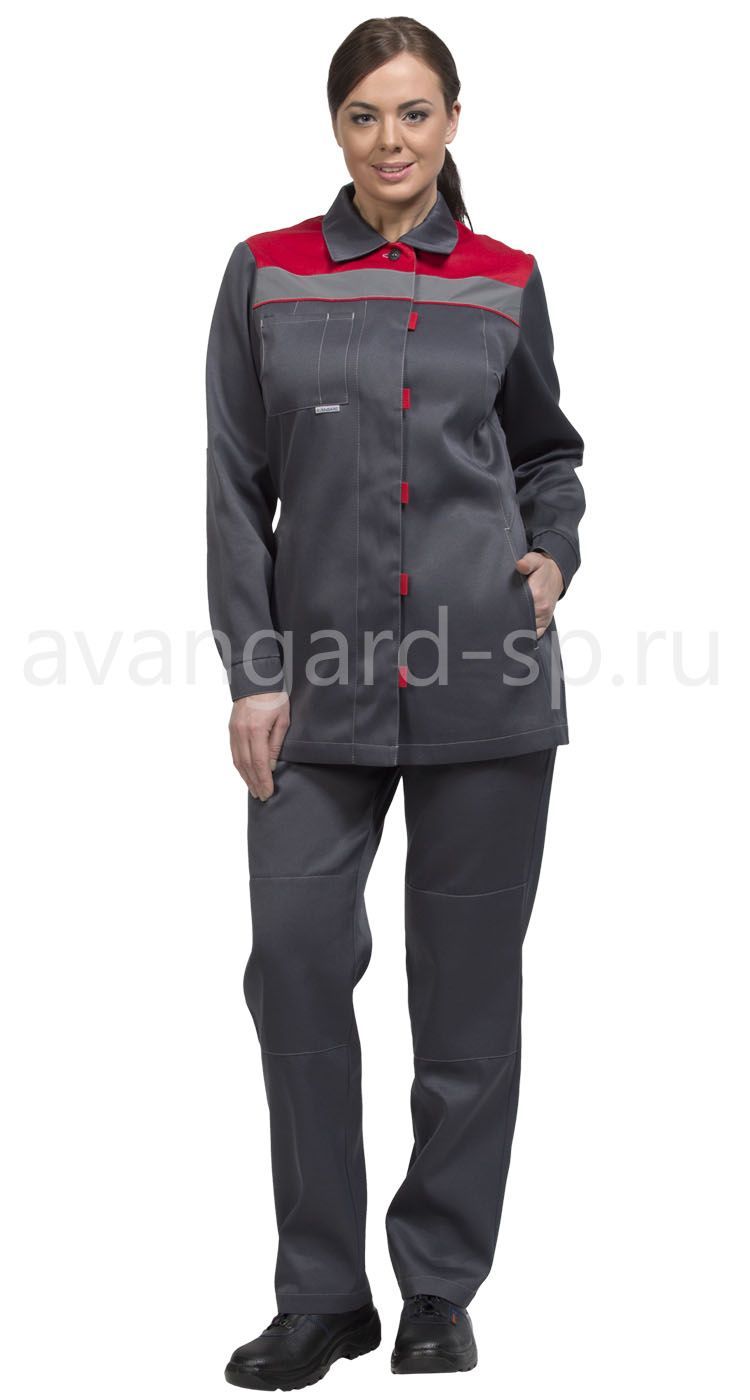 Костюм женский рабочий летний "Тимбер" серый-красный с брюками
